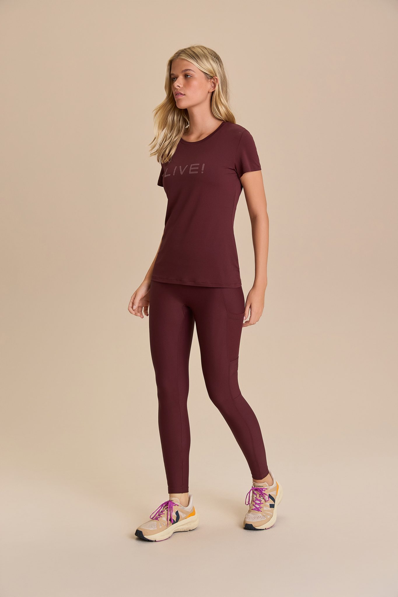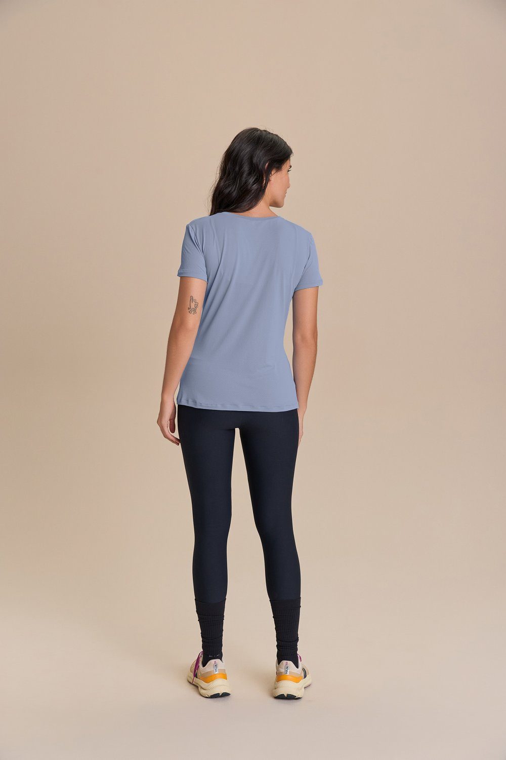 Tecido leve, com textura sutil e toque macio, proporciona conforto e liberdade de movimento durante os treinos. A poliamida SENSIL®, reconhecida por sua qualidade superior, resistência e toque suave, contribui para maior durabilidade e bem-estar no dia a dia. Desenvolvido com tecnologia Quick Dry, que acelera a evaporação da umidade e contribui para manter o corpo seco, além de Easy Care, que facilita os cuidados diários ao reduzir a necessidade de passar. O processo de tingimento com economia de água reforça o compromisso com a sustentabilidade.